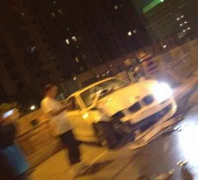 寶馬凌晨撞清涼門大橋上的南京護欄網(wǎng),寶馬車頭嚴重變形